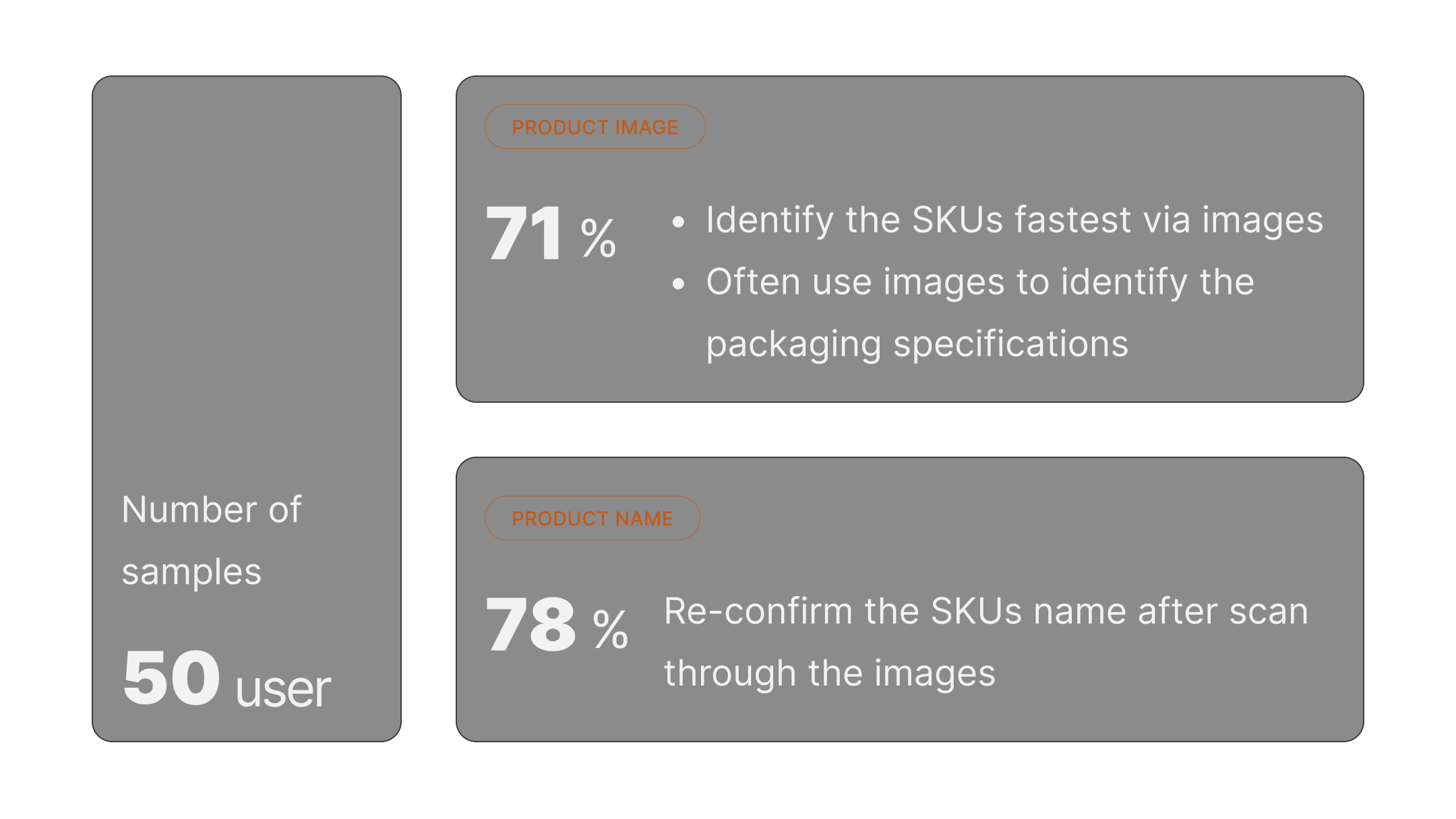 Users often scan through the image first to identify the product and then read the product name to confirm
