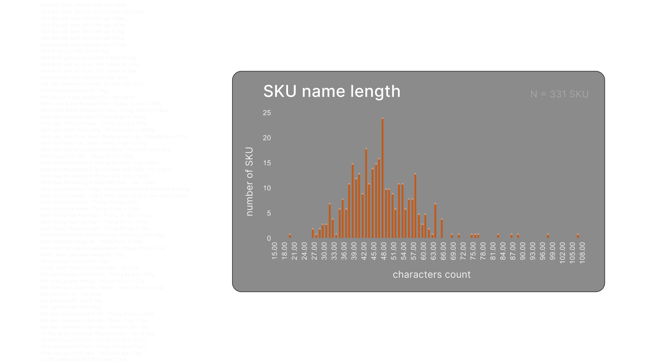 The length needed to display ~95% of the names of the products is 67 characters