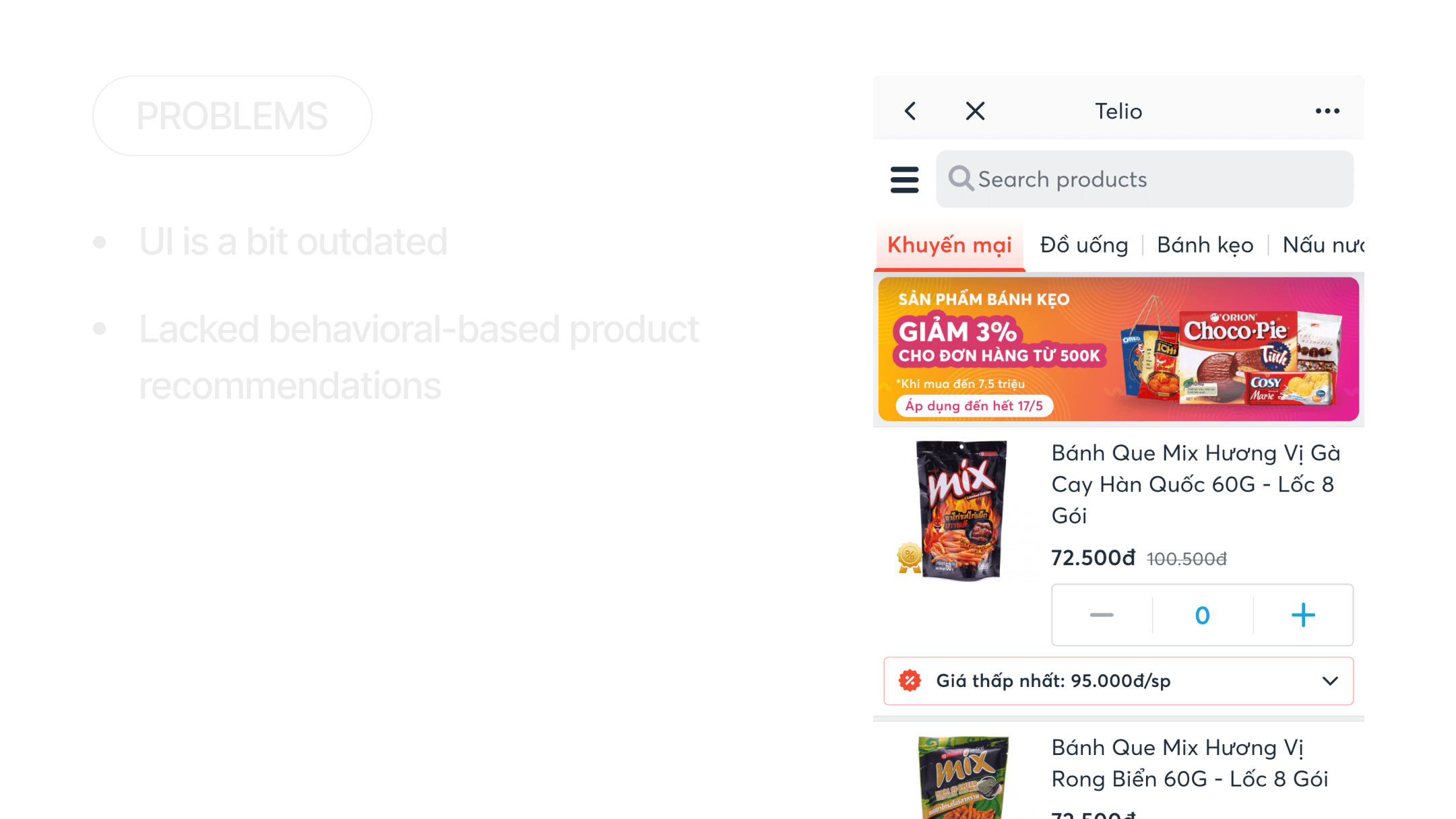 We identified UI improvement opportunities that maintain user focus while enhancing product discovery features